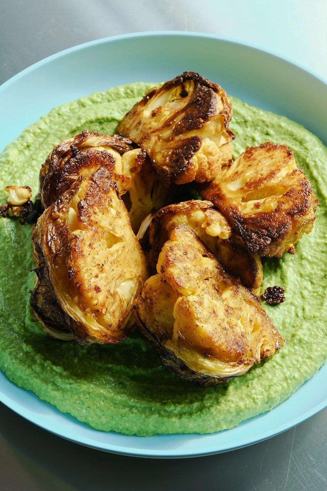 De her bagte, krydrede blomkål med ærtecreme, sukkerærter og ristede pinjekerner er en vidunderlig smagfuld grøntsagsret med varme krydderier, cremethed og sprød topping. En oplagt opskrift med blomkål, som både fungerer genialt som hovedret eller som en side. Opskriften er både enkel at gå til og kræver kun 15-20 min. arbejdstid.