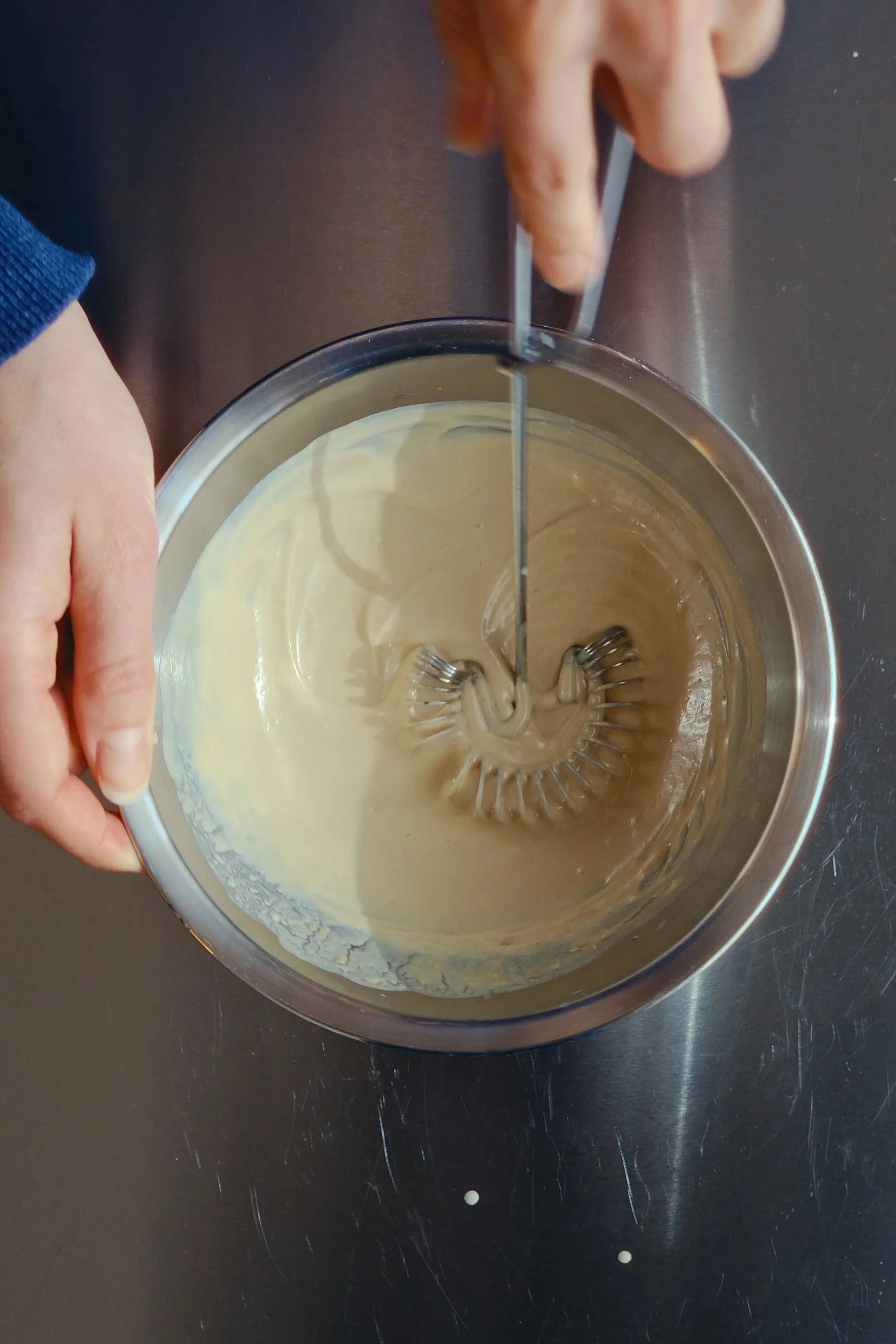 5. Pisk ingredienserne til tahinsaucen sammen og juster konsistensen med vand. Tilsæt 1 spsk ad gangen, så du har bedre kontrol over det.