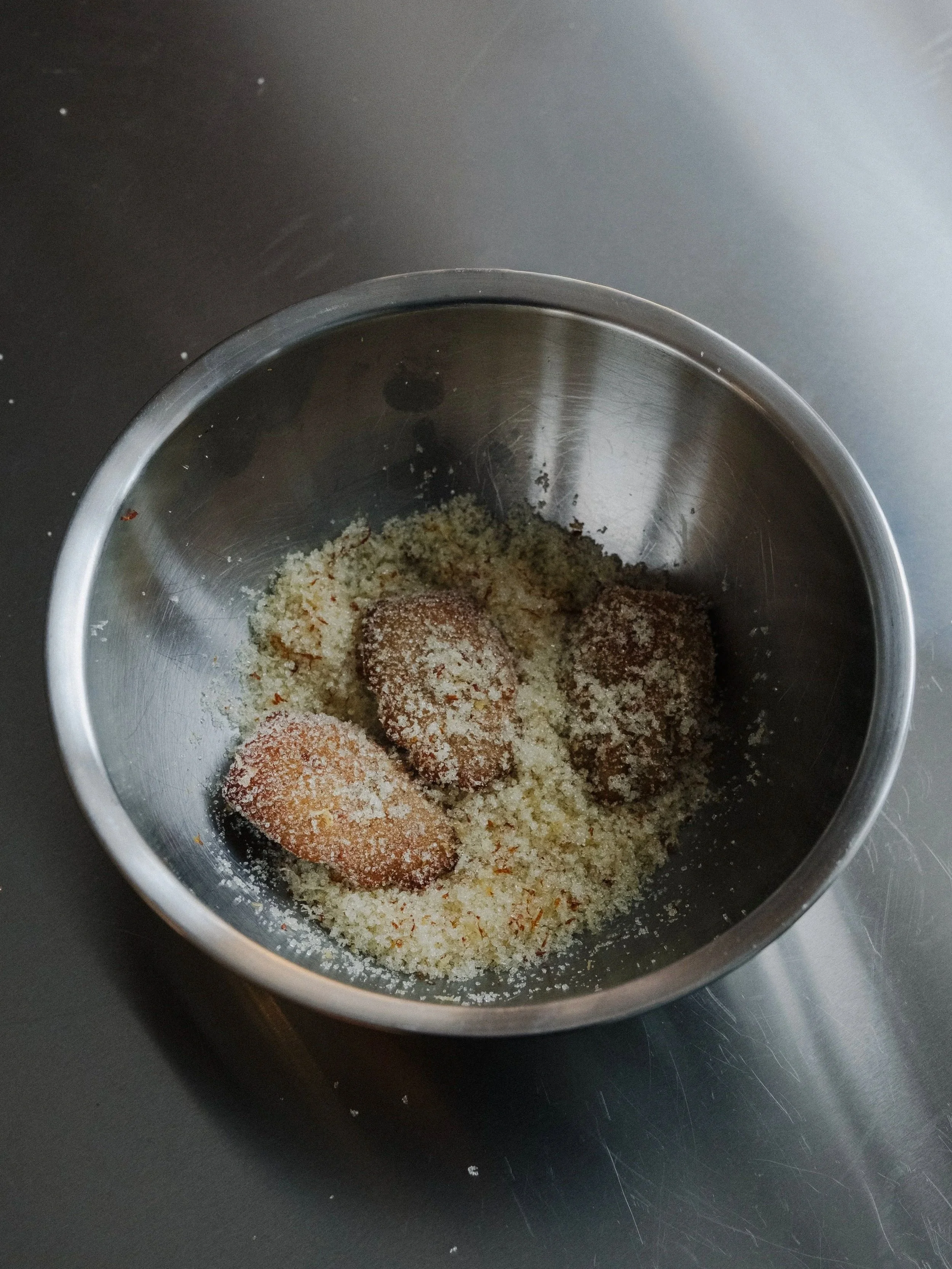 Det hjemmelavede citrussukker sætter prikken over i’et. Når sukkeret gnubbes med friskrevet skal fra blodappelsin, frigives de naturlige olier, som giver en intens og aromatisk citrusduft. Når madeleinekagerne vendes i sukkeret, får de en let sprød overflade og et ekstra lag smag, der forlænger citrusnoterne i hver bid.