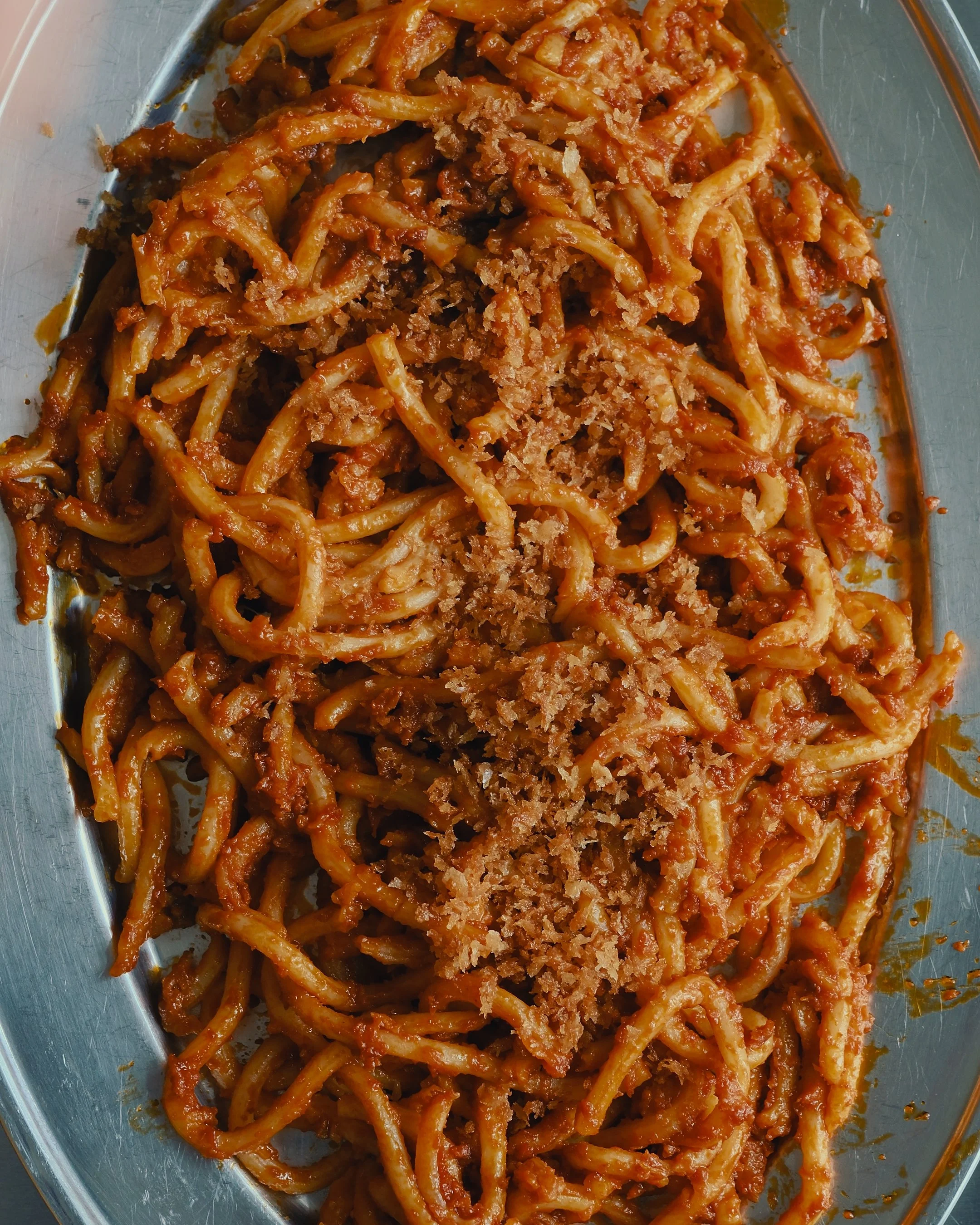 Den her ret med udon nudler i brændt tomatsauce og pangrattato er enkel, men intens i smagen – en pastalignende nudelret, med en skøn dybde, umami og sprødhed. Opskriften er oplagt at lave på hverdage eller når du bare ønsker at få, kraftfulde ingredienser får lov til at smage igennem.