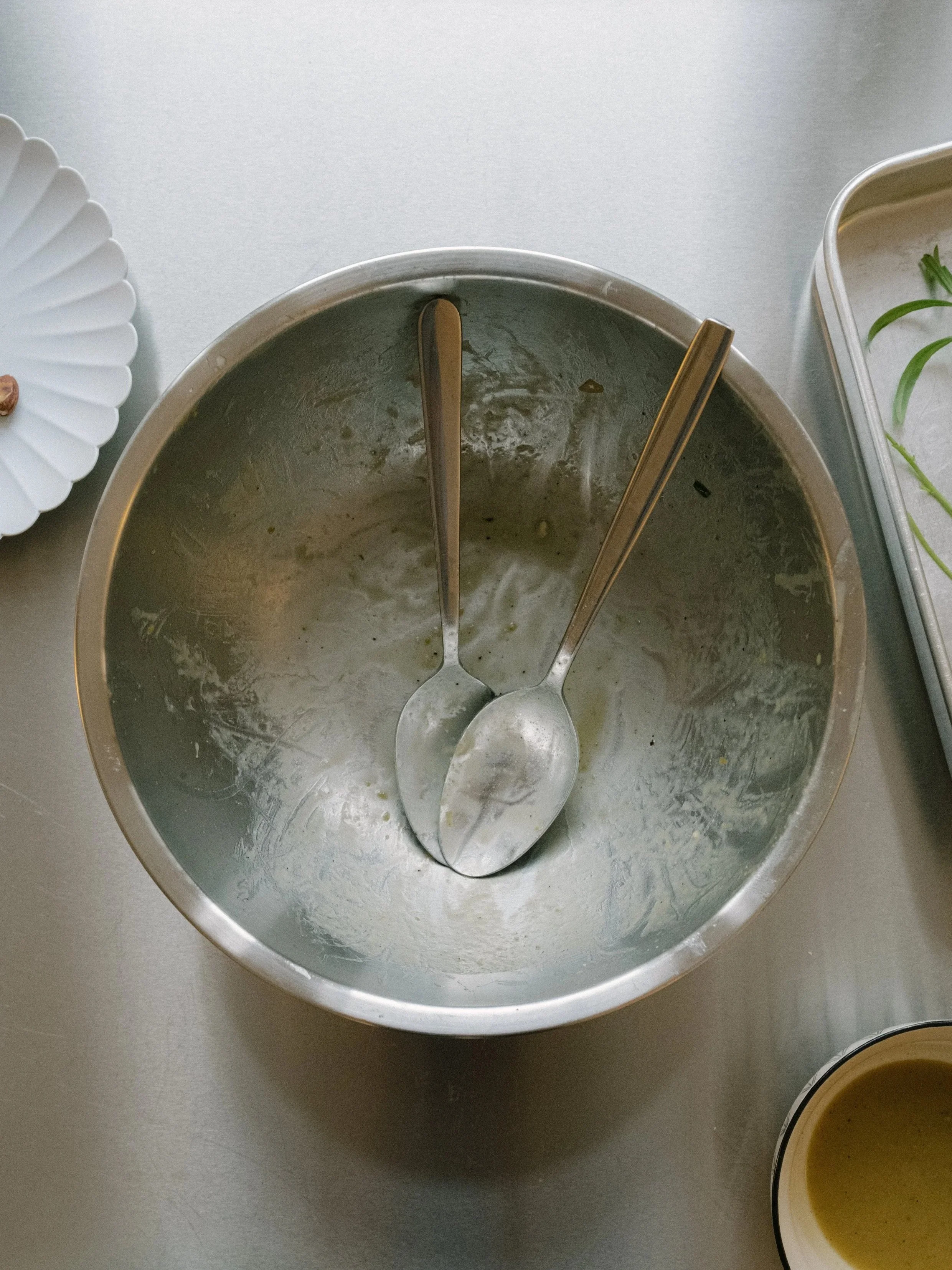 Rør ingredienserne til citronvinaigretten sammen i en stor skål. Smag den til.