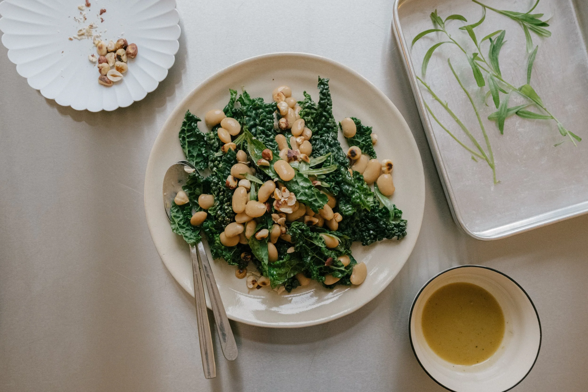 Salat med butterbeans, palmekål, hasselnødder, estragon og citronvinaigrette